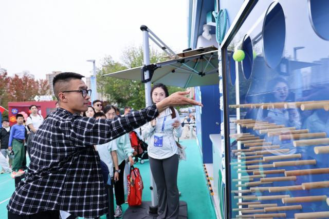 而“投出京彩”游戏前的长队,更彰显了服务设计的“场景化智慧”。工作人员递出的软胶球,让网球爱好者李先生下意识摆出握拍姿势,手腕轻旋间球入指定墙洞,围观人群的喝彩声瞬间点燃现场。“比看球员发球还紧张!”李先生与同伴击掌时的兴奋,恰是“将网球运动元素融入互动”的设计初心——用观众熟悉的运动场景降低参与门槛,让体验更具代入感。孩子们蹦跳投球、领取定制徽章、在打卡墙前留影的画面,更让展区成为“全龄友好”的欢乐空间,细节处尽显服务温度。